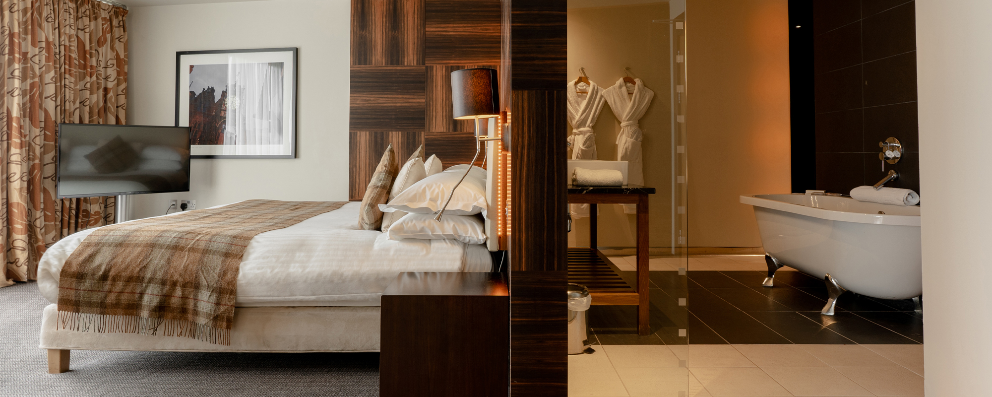 The lounges in the hotel are located on the ground floor where the surfaces are a mix of level wooden flooring, polished stone floors and carpeted areas in the lounge bar. Our corridors are wide enough to accommodate a wheelchair throughout. Assistance dogs are more than welcome within the lounges.